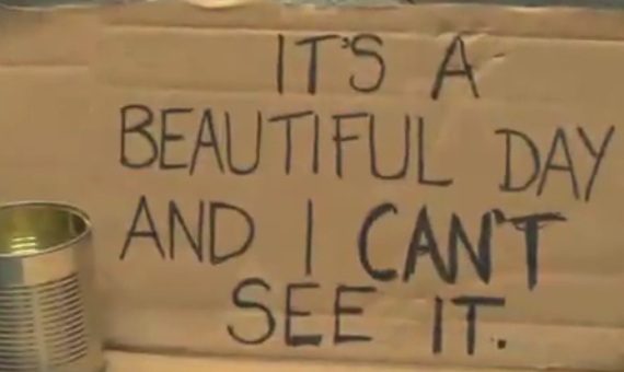 Kör bir dilenci sokakta dileniyor, yanında bir karton üzerine yazılmış “körüm, lütfen yardım edin” yazıyor. Birçok kişi yanından gelip geçiyor, kimisi paraları yere atıyorlar, fark etmiyorlar bile. Sonra bir kadın geçiyor, durup geri dönüyor ve kartonu ters çevirerek arkasına şu cümleleri yazıyor “çok güzel bir gün, ama ben göremiyorum”. Ardından geçen birçok kişi para bırakıyor. Adam da hayrete düşüyor. Biraz sonra aynı kadın geri dönüyor, adam kadına “ne yazdın?” diye soruyor. “Aynısını yazdım, ama farklı kelimelerle” diyerek uzaklaşıyor…