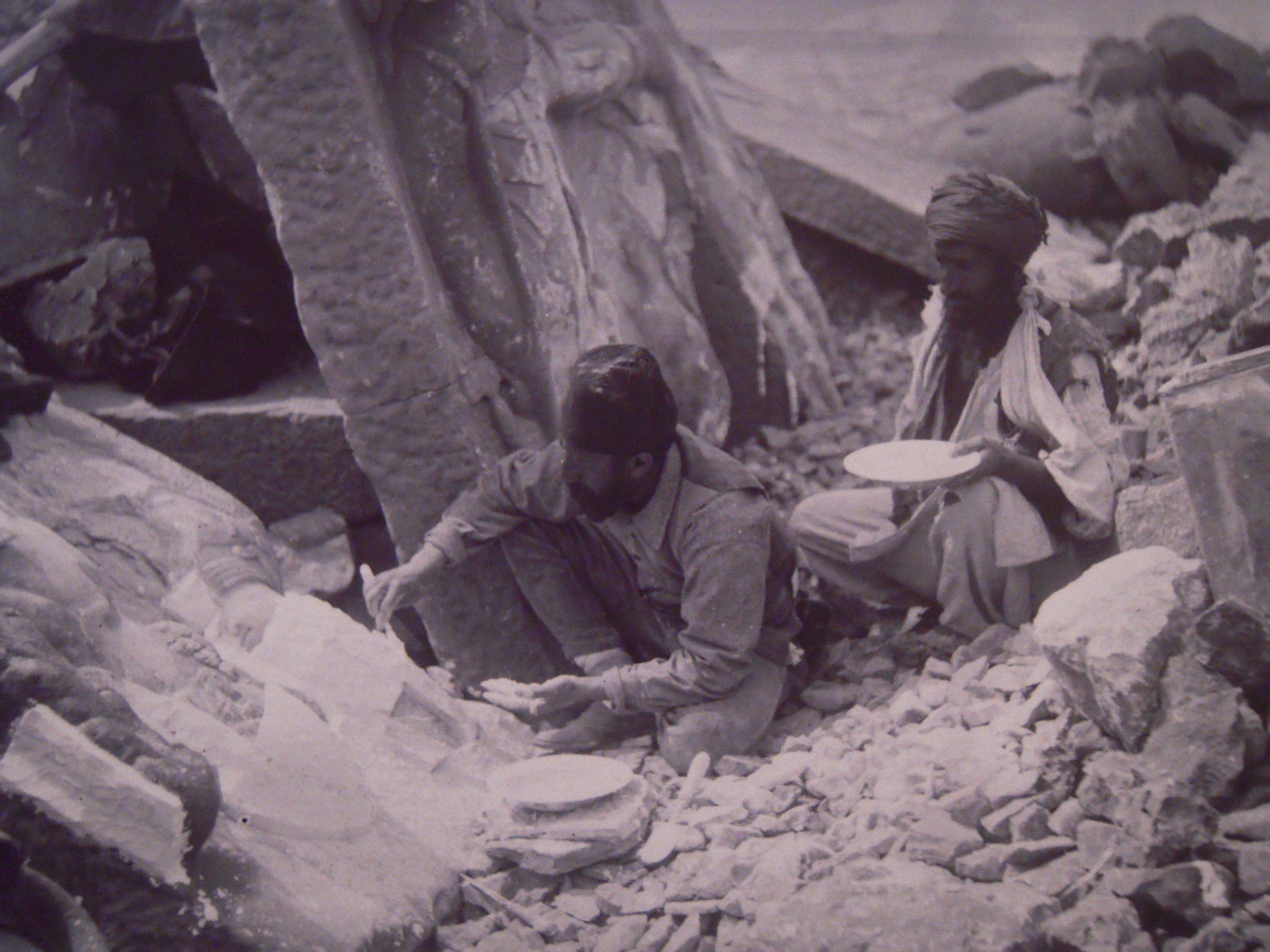 Osman Hamdi Bey Antiokhos’u tasvir eden bir taş kabartmanın alçı kalıbını çıkarırken