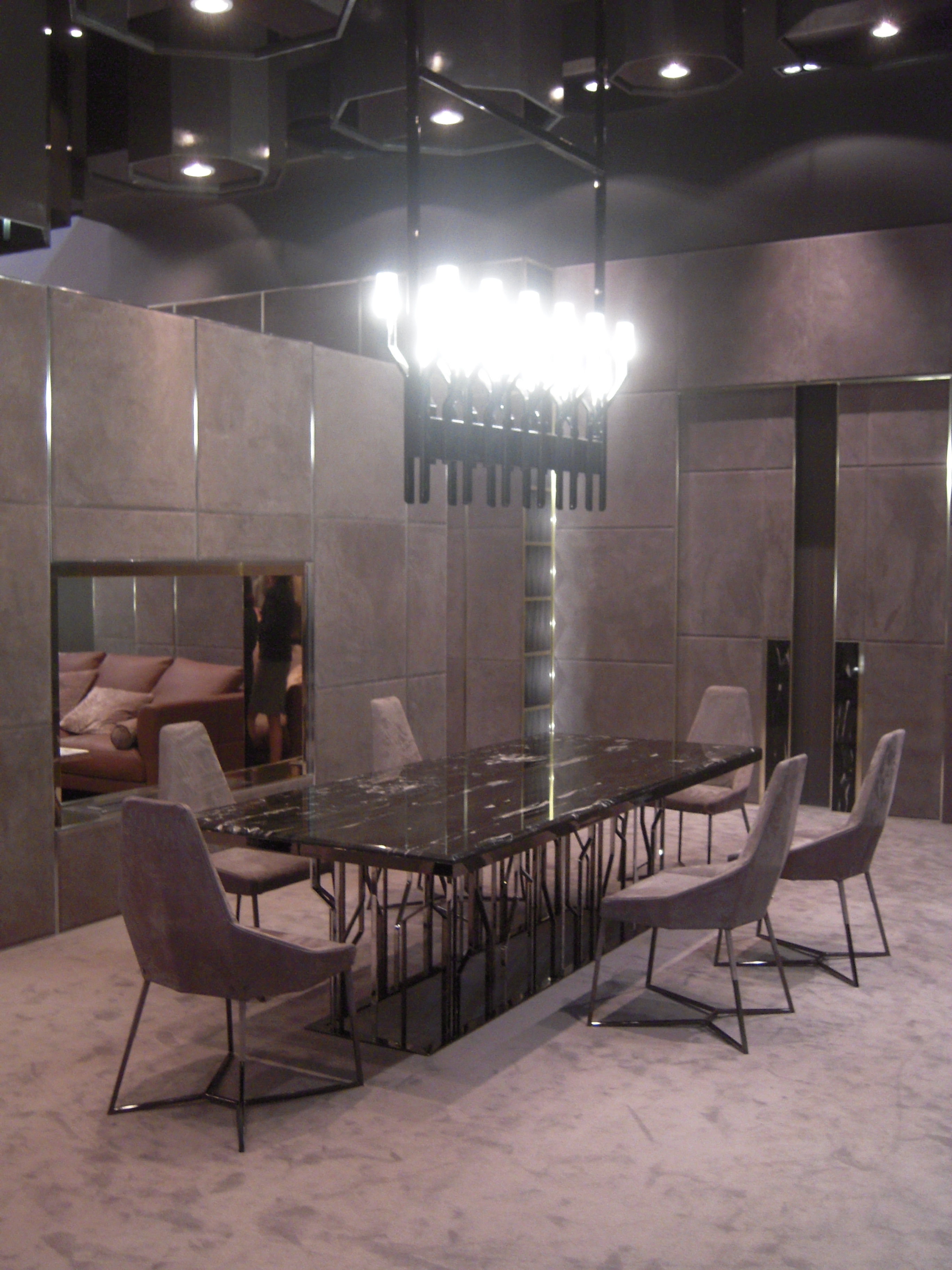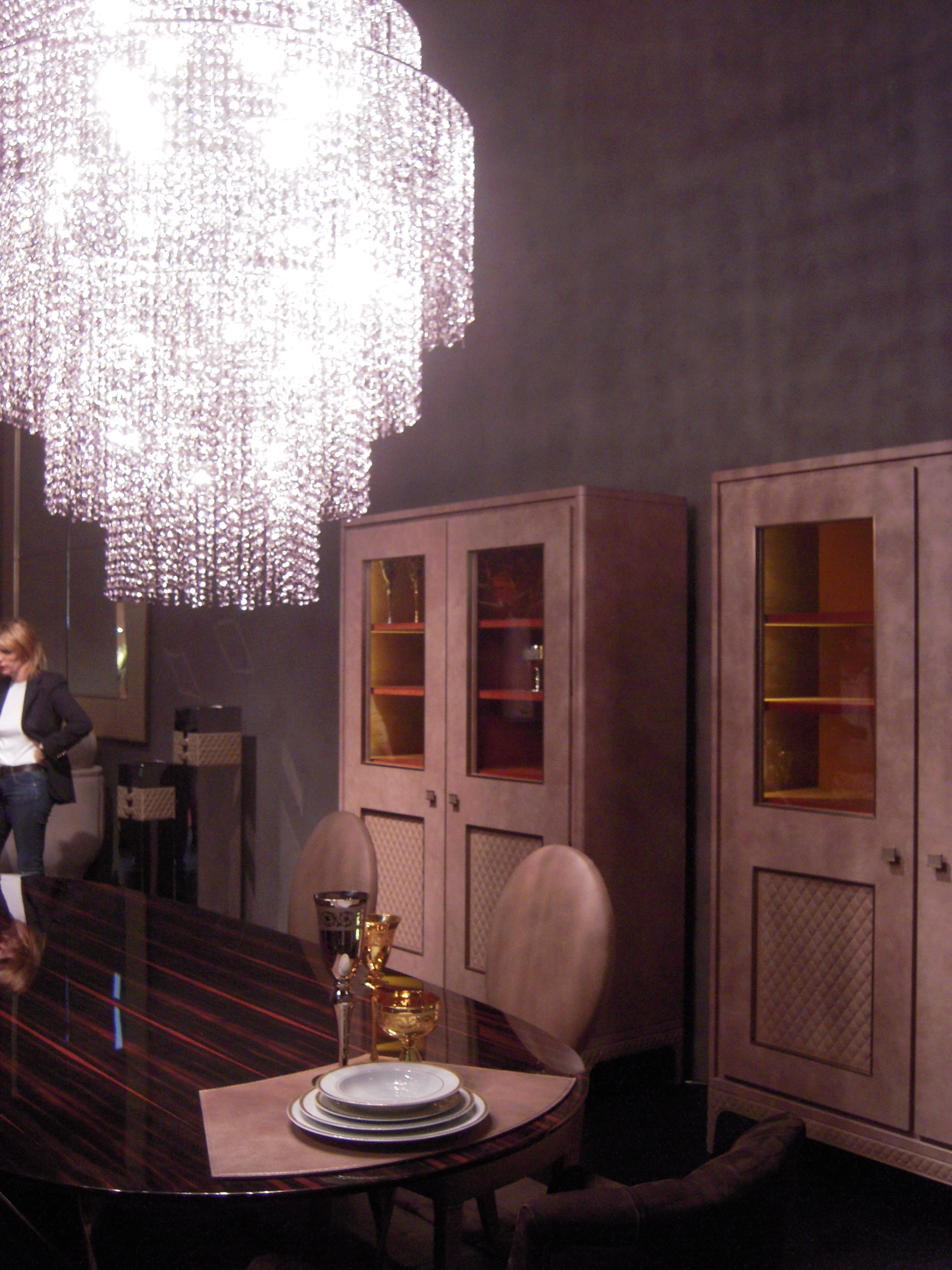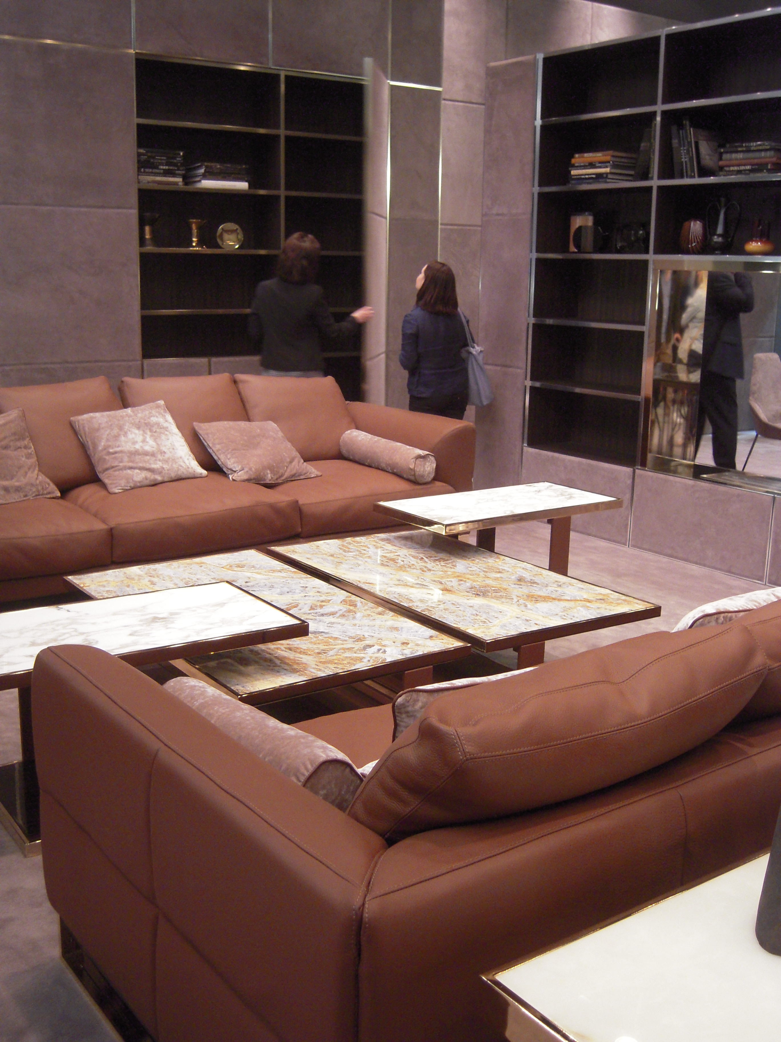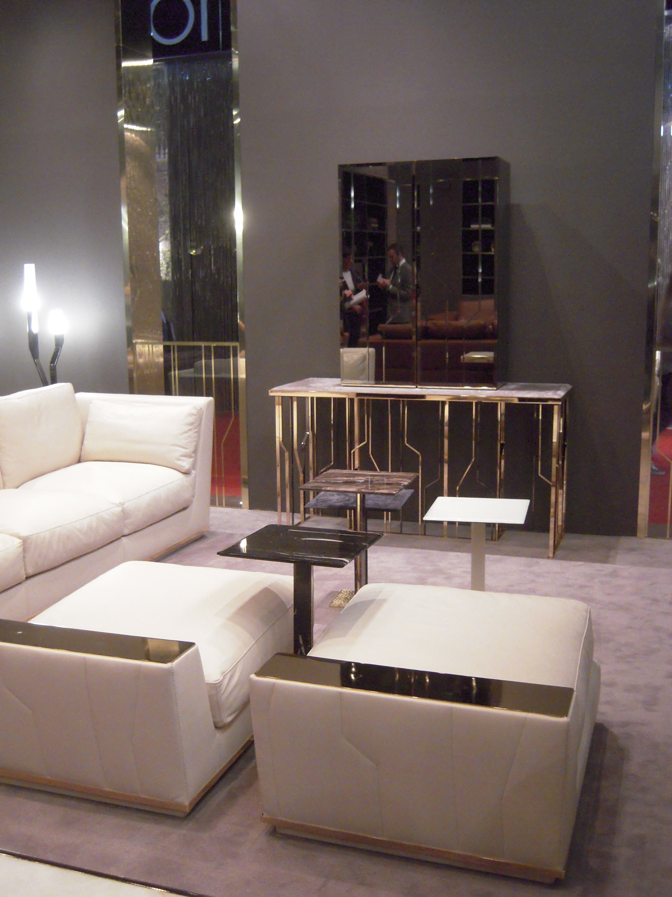 Longhi firması rafine bir zevk, ağırbaşlı şık mobilyaları ile yine üst segment çizgisini yansıtıyordu. Deri ve pirinç kullanımı dikkat çekiyor. Deri kaplı dolap ve duvarlar son derece şık.