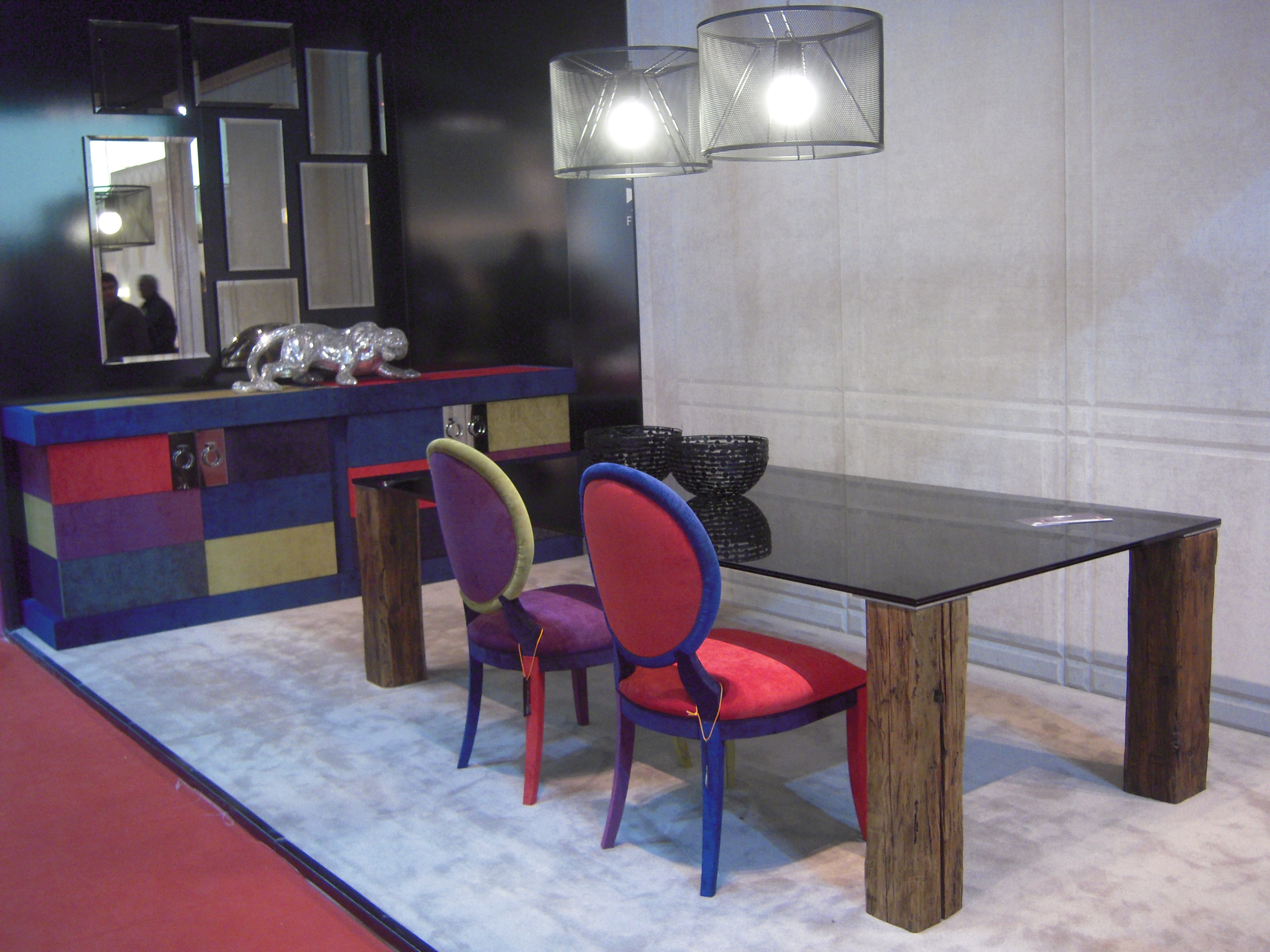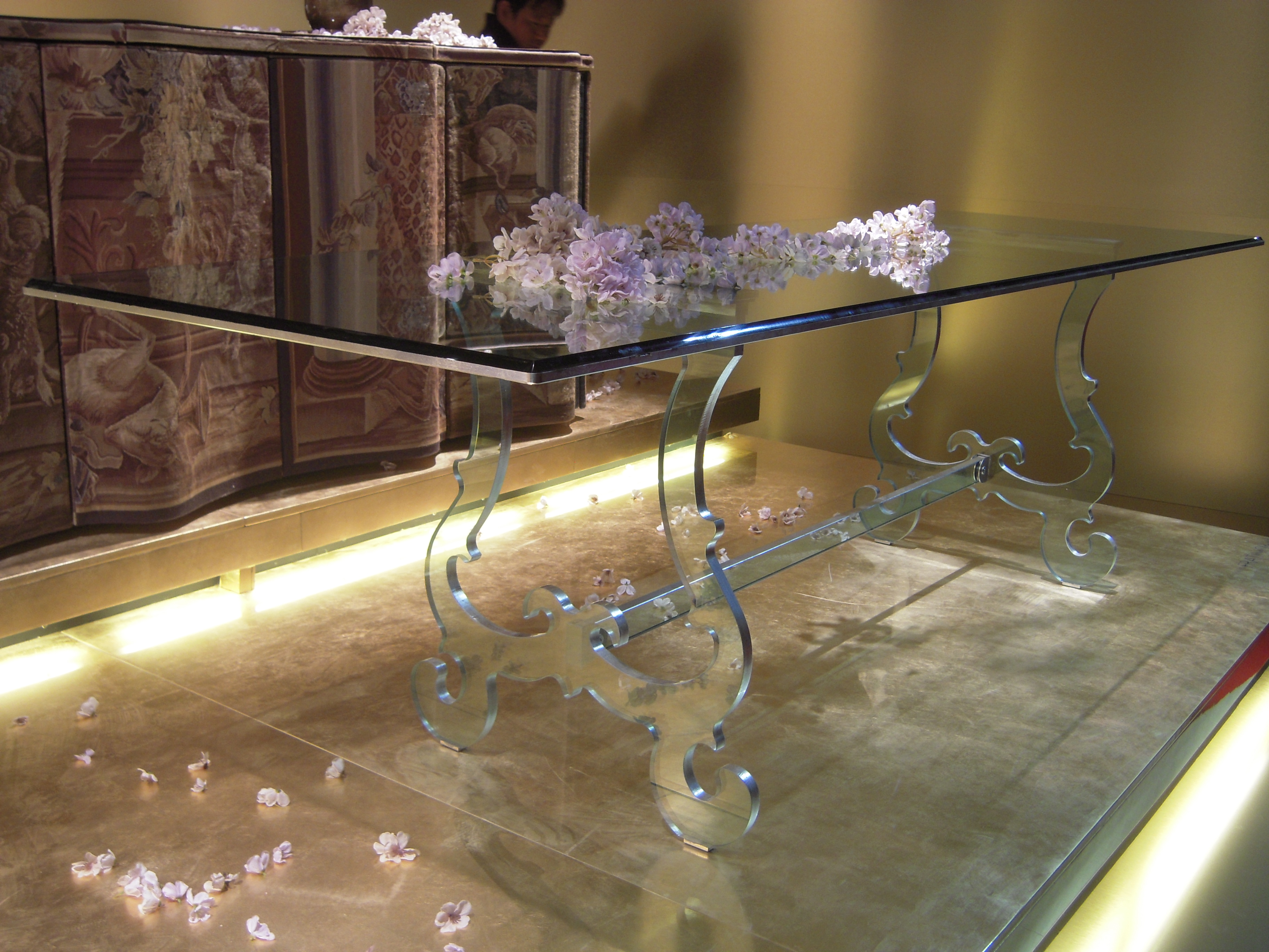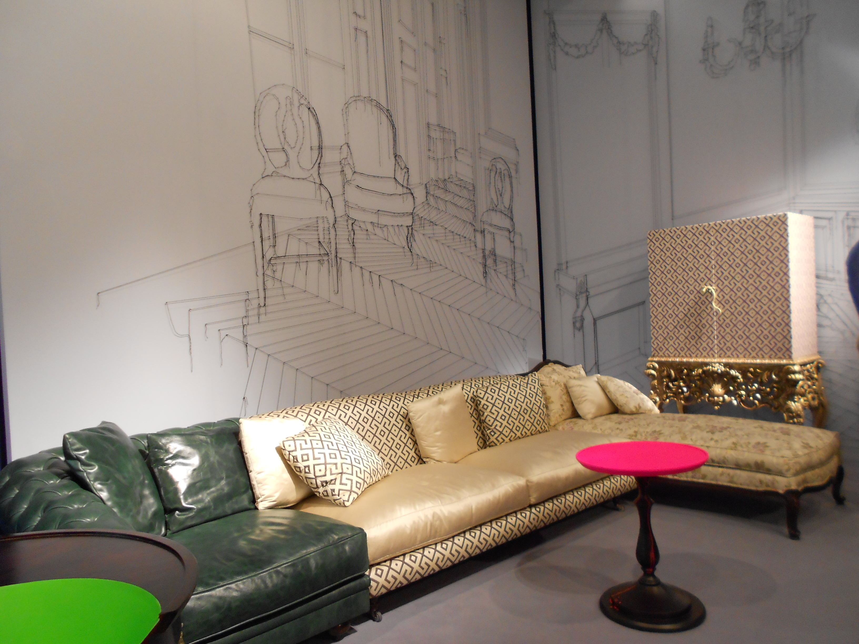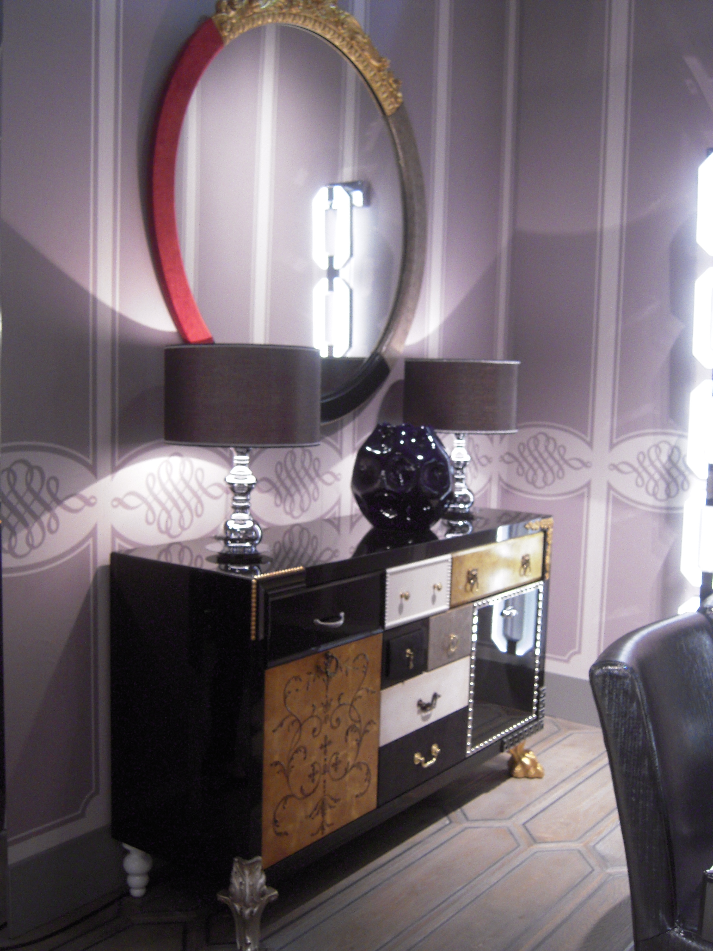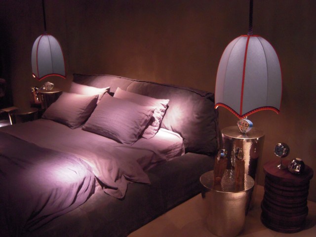 Longhi firması rafine bir zevk, ağırbaşlı şık mobilyaları ile yine üst segment çizgisini yansıtıyordu. Deri ve pirinç kullanımı dikkat çekiyor. Deri kaplı dolap ve duvarlar son derece şık.