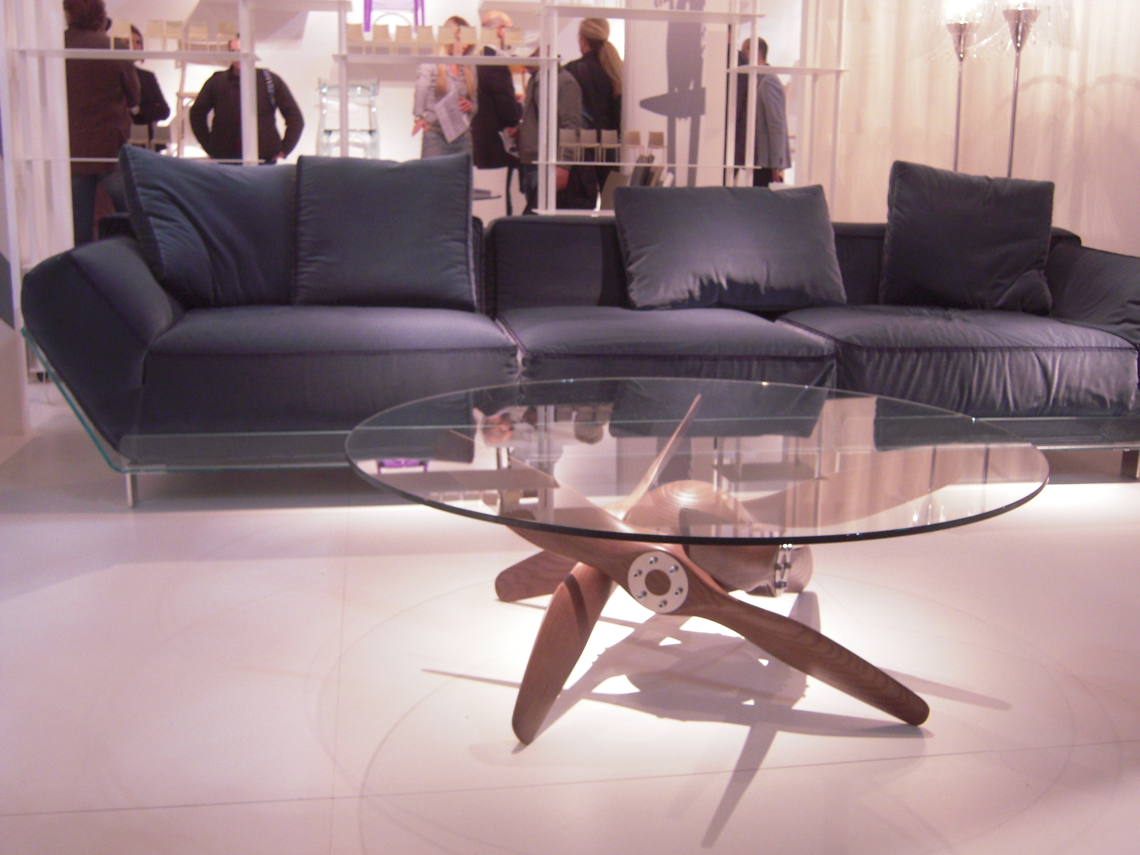 Colico firmasından pervane ayaklı cam sehpa ile cam konstrüksiyondan yapılmış kanepe…