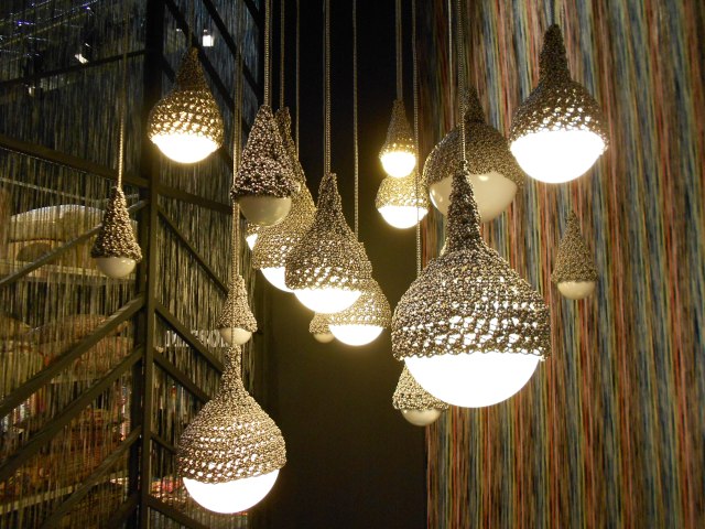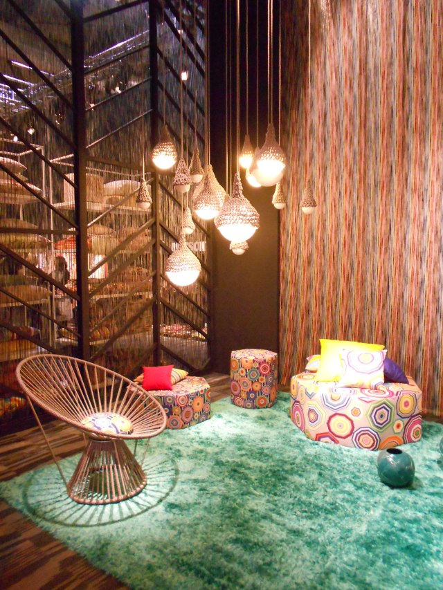 Missoni firması renkli kumaşları ile ünlüdür. Nakış kaplı farklı çaptaki lambalar harika!