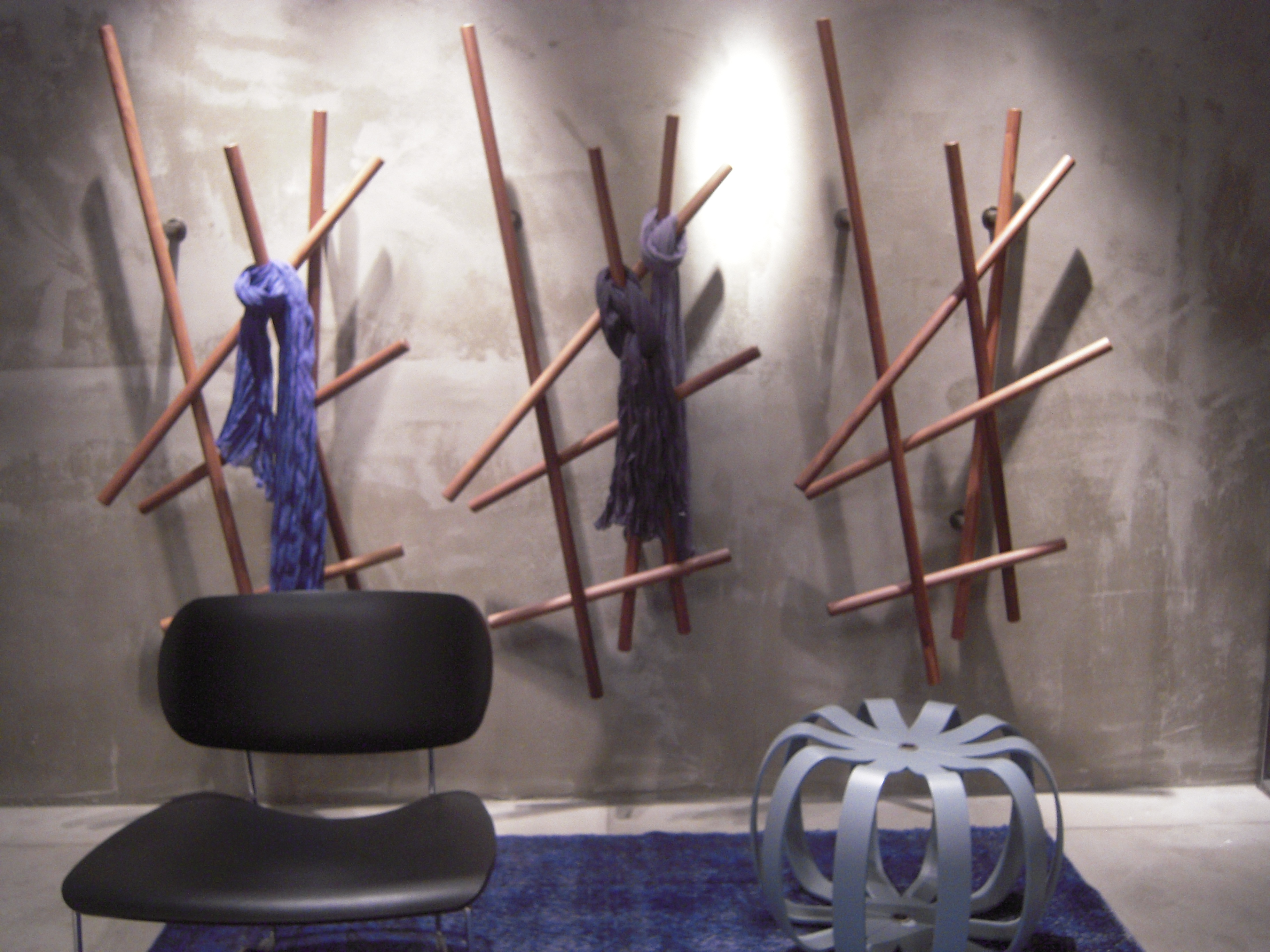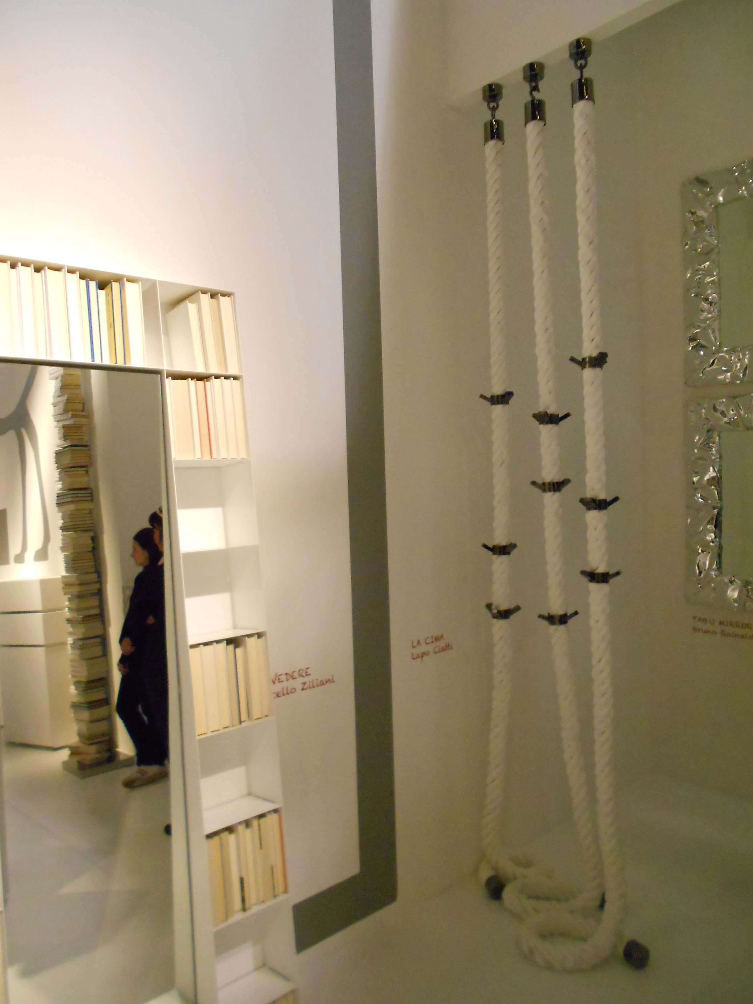 Opinion Ciatti firmasından kitaplık/ayna tasarımı ve kalın bir halat üstüne monte edilmiş askılar…