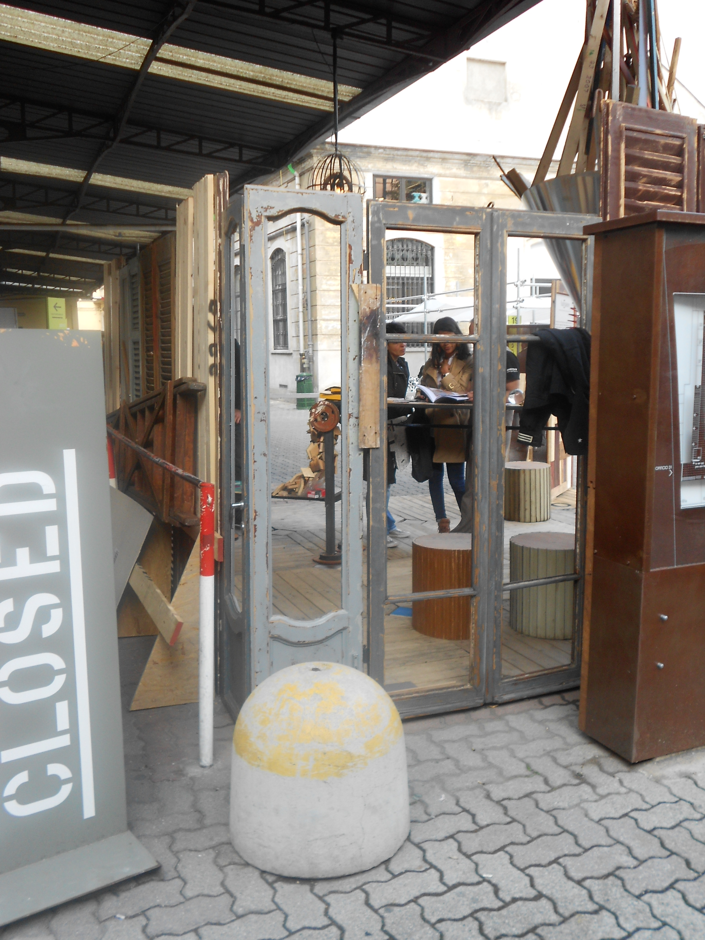 Stand alanını eski kapı ve panjurlar ile belirlemiş, dönüşümlü malzeme kullanımı üzerine çalışmalar yapan Controprogetto grubu