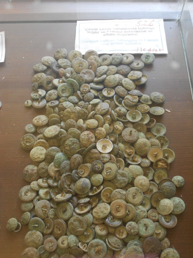Çeşitli savaş sahalarında bulunan İngiliz ve Fransız askerlerine ait savaş düğmeleri