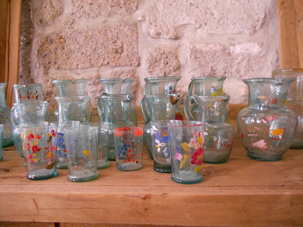 İzmir Kemalpaşa ve Aydın’daki cam atölyelerine cam atıkları gider ve resimde görülen halkın kullanabileceği daha ucuz ürünler üretilir. El boyama.