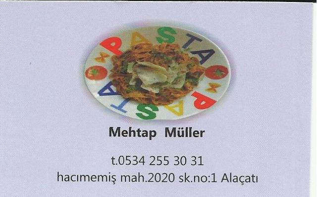 Burası Mehtap Müller’e ait. Mehtap hanım meslek olarak eczacılık fakültesinde biyologmuş,sonra emekli olmuş. Eşinin işi icabı çokça seyahat etmiş. Bu sırada yurtdışında makarna kesmeyi öğrenmiş.