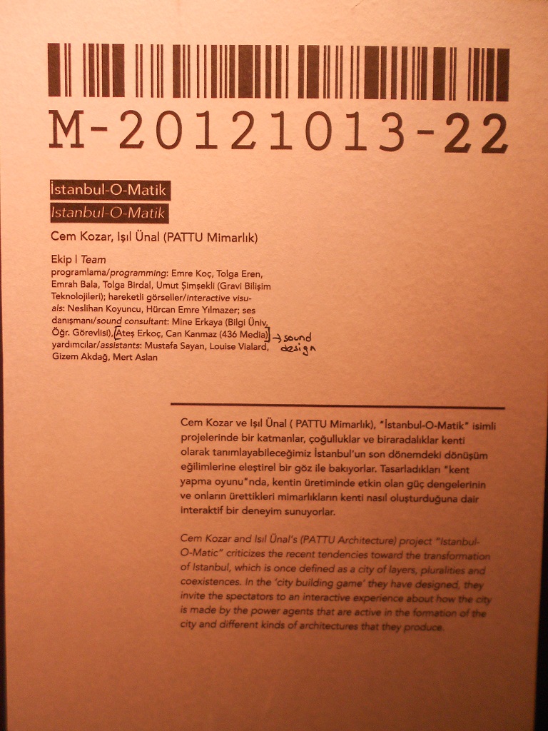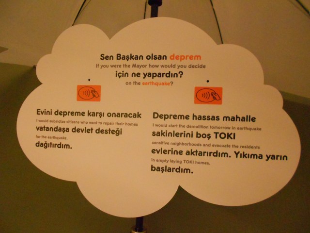 Bir diğer ilginç bölüm de İstanbul’un toki, politikacılar, kentliler, GYO, star mimarlar, turistler ile geldiği durumu ısıklı interaktif çalışma ile gözler önüne serilen çalışma idi.