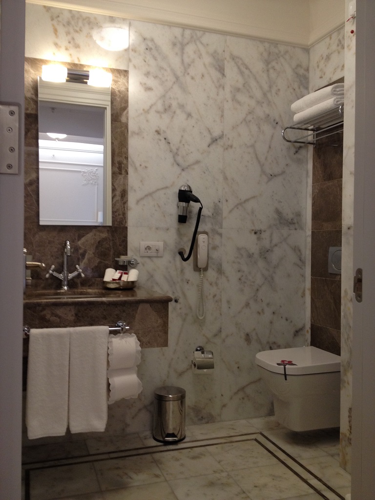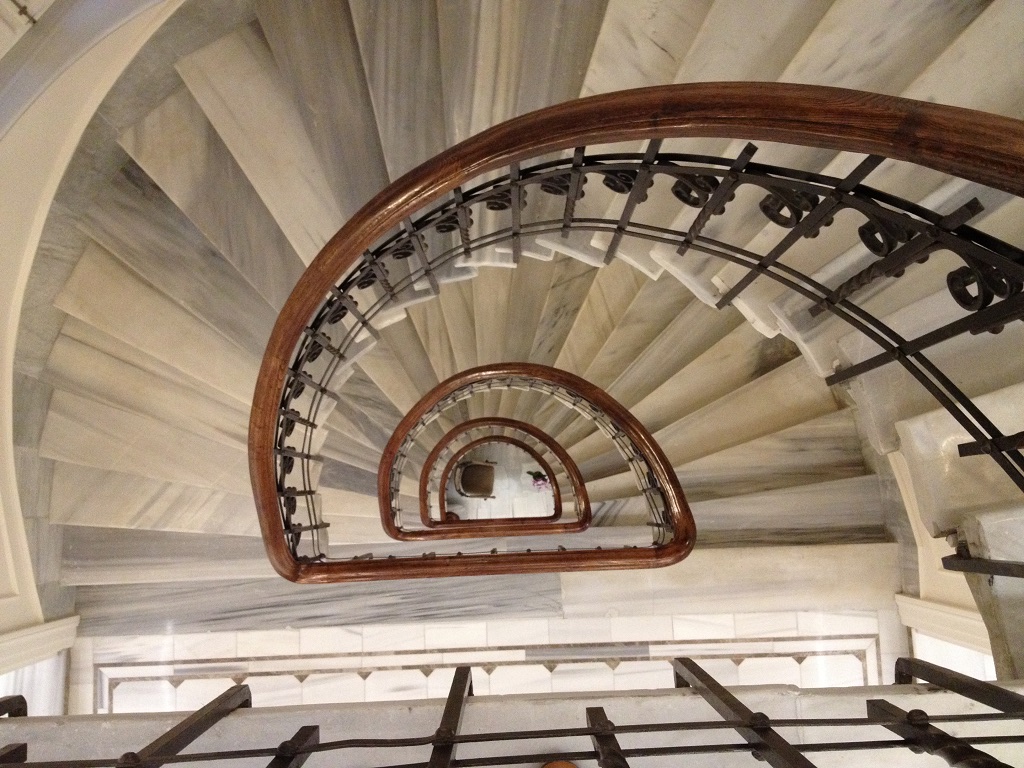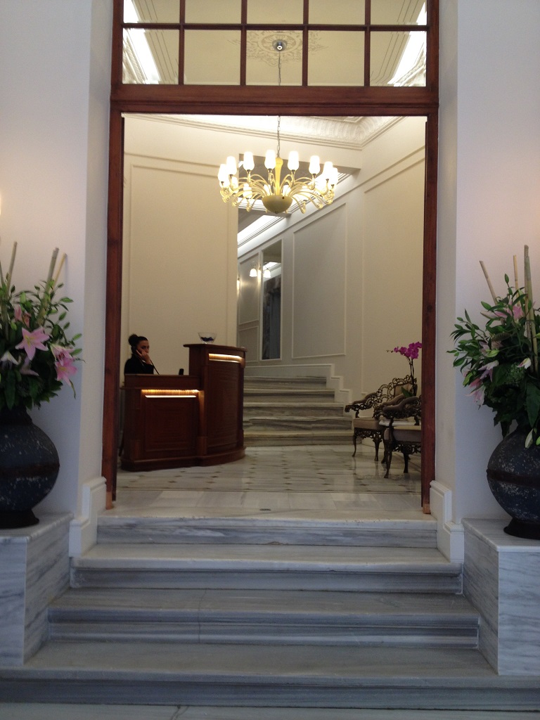 Mermer merdivenler görünüşten de anlaşılabileceği gibi orijinal. Oturma takımı otel sahibinin ofisinden getirtilmiş eski bir takım.