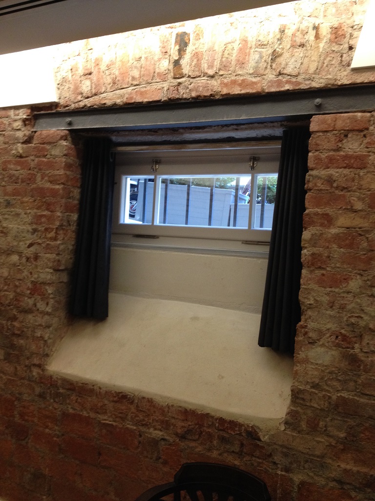Otelin giriş katındaki tuğla duvarların sıvaları soyulmuş ve tarihi tuğlalar ortaya çıkarılmış. Tuğla üzerinde zamanın logolarını görmek mümkün.