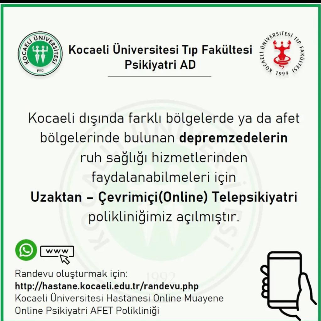 Depremzedelerin ruh sağlığı hizmetlerinden faydalanabilmeleri için online hizmet