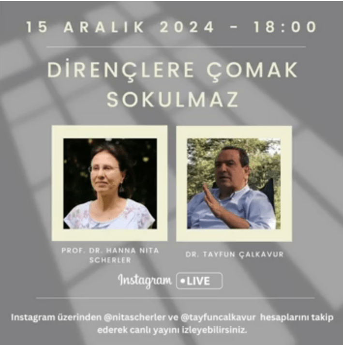Prof. Dr. Hanna Nita Scherler ile Dr. Tayfun Çalkavur‘un “Dirençlere Çomak Sokulmaz” üzerine gerçekleştirdiği Instagram sohbeti yazılı olarak değerli izinleri ile paylaşmak isterim.